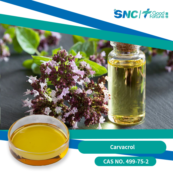 Carvacrol is a naturally occurring monoterpenoid phenol found primarily in the essential oils of oregano (Origanum vulgare), thyme (Thymus vulgaris), and other aromatic plants from the Lamiaceae family. Renowned for its distinctive pungent aroma and robust antimicrobial properties, carvacrol has garnered significant attention across various industries, including food preservation, pharmaceuticals, and agriculture. The pharmaceutical industry has recognized carvacrol's therapeutic potential. It exhibits anti-inflammatory, analgesic, and anticancer properties, making it a subject of interest in drug development. Carvacrol modulates various signaling pathways involved in inflammation and cancer progression, suggesting its utility in treating conditions such as arthritis, neurodegenerative diseases, and certain cancers.