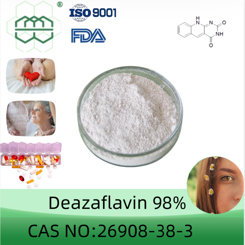 Deazoflavin powder is a pyridine pyrimidine compound extracted from flavin, also known as vitamin B2. It is generated by replacing the aza group containing the nitrogen N element at position 5 with the denitrification group containing the carbon C element. This unique denitrification substitution allows the 5-deazoflavin backbone to function similarly to the vitamin B3 backbone NMN/NAD+. Interestingly, the main chain of vitamin B2 is chemically stable, and 5-deazaflavin has multiple substituents that can be converted. Therefore, 5-deazoflavin powder has several unique chemical and physical properties that make it an attractive compound not only as a potent antioxidant that can help protect cells from oxidative stress. Among them, the application of 5-desazoflavin powder. 5-desazoflavin powder is an anti-aging ingredient that can promote the production of NAD+ in the body. NAD+ is a coenzyme that plays an important role in energy metabolism and cell repair. Plays an important role in helping slow down the cellular aging process. In addition, 5-desazoflavin can also be used to synthesize certain nucleosides and nucleotides, which are the basic components of DNA and RNA. Its unique chemical structure makes it useful in the development of new drugs and therapies. 5-Deazoflavin powder has been shown to have potential therapeutic applications in the treatment of various diseases.