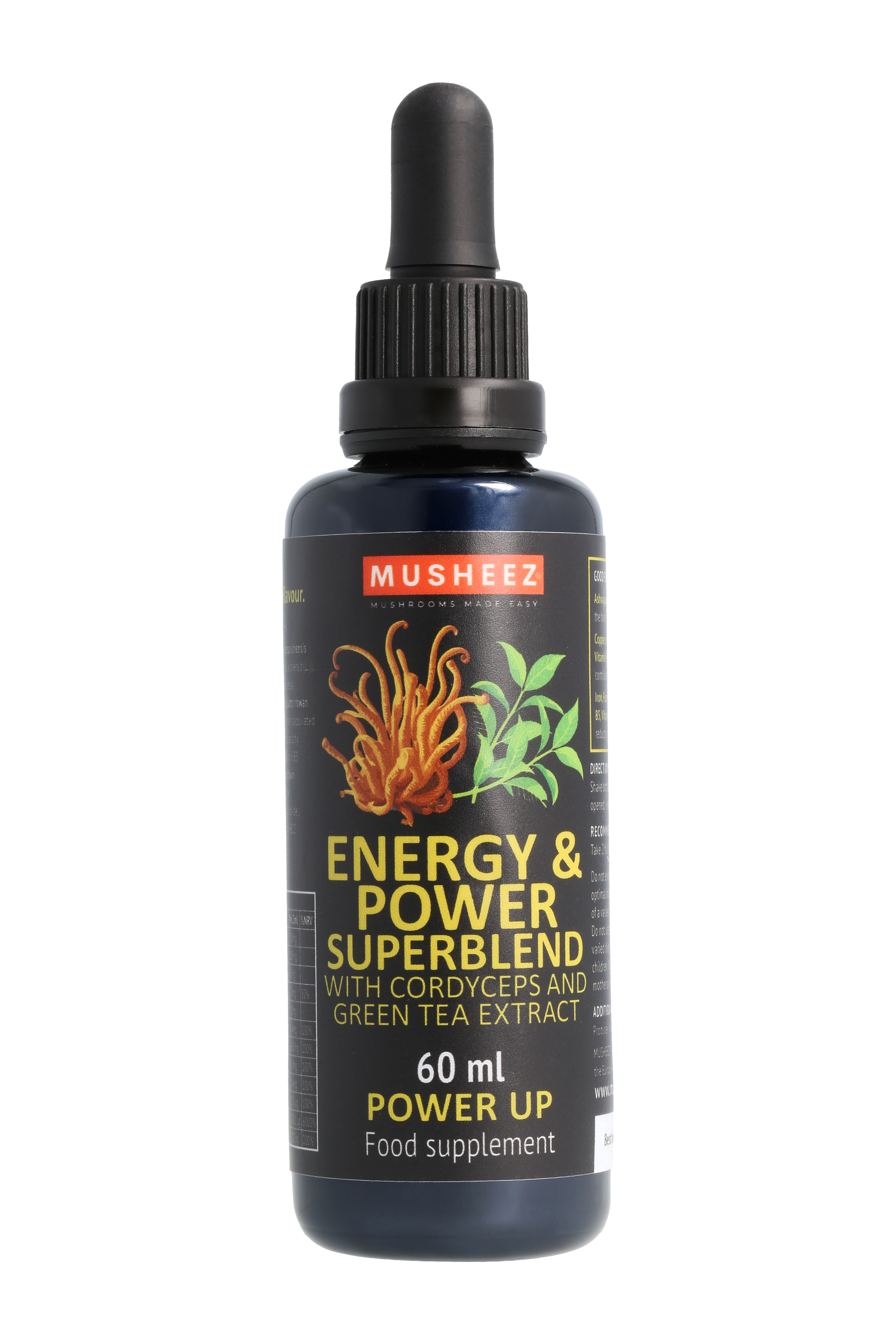 Powered by adaptogenic Cordyceps CS-4 and calming Ashwagandha root extract, this blend combines traditional herbal wisdom with a full-spectrum B-vitamin complex, Green Tea extract, and bioavailable Iron and Copper — all in a delicious, blackcurrant-flavored format.