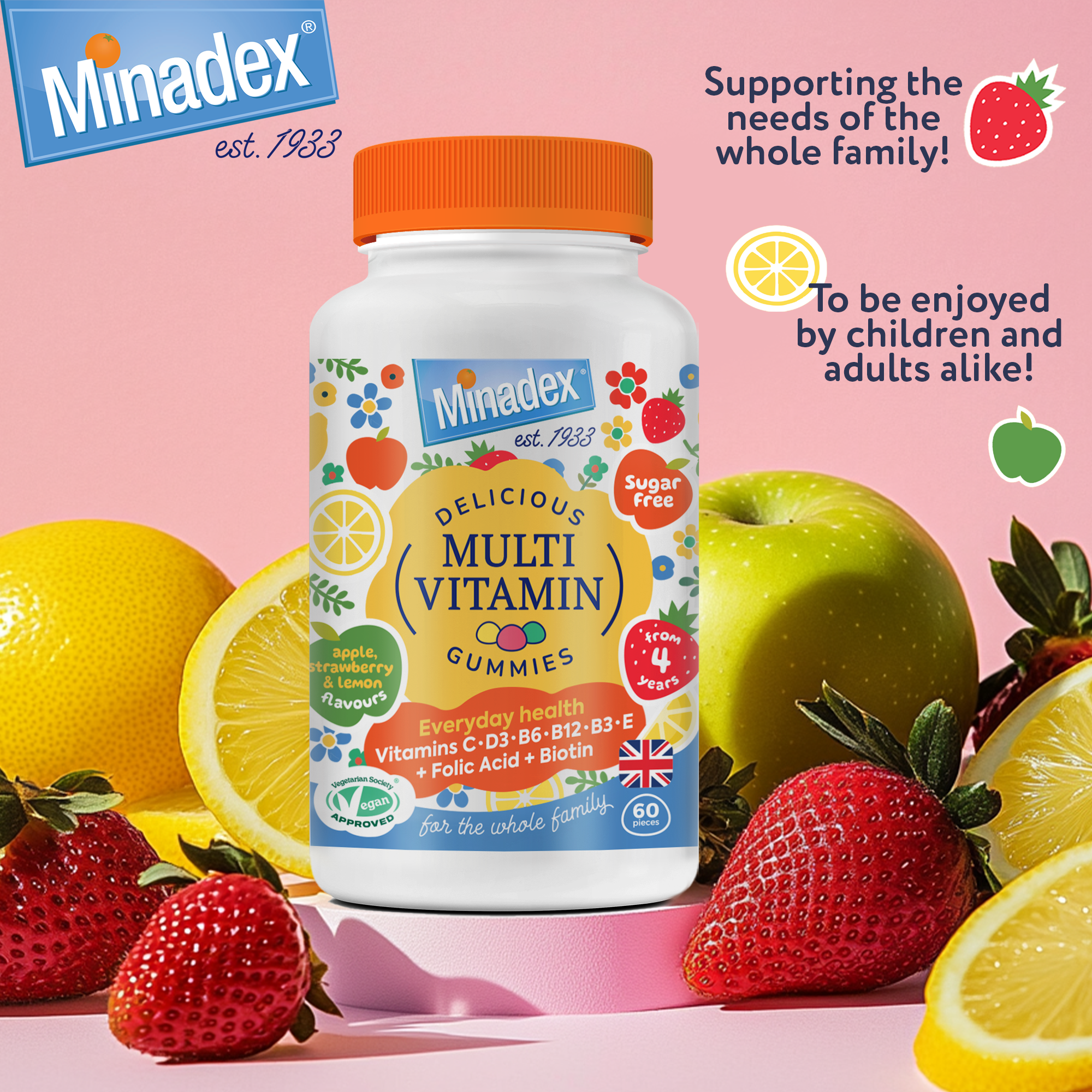 Irresistibly delicious fruit-flavoured gummies for kids and adults alike. Packed with essential vitamins, they just melt in your mouth. With apple, strawberry, and lemon flavours, they're yummy and great for everyday nutrition.