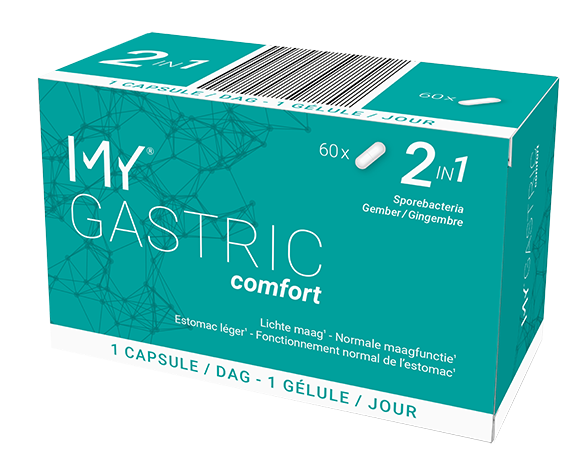 MY®GASTRIC comfort is a gentle digestive formula combining ginger root extract and clinically validated spore-forming probiotics (MY01 & MY02). Designed as a complementary or standalone solution, it helps maintain stomach comfort and microbiome balance in sensitive individuals or during mild gastric discomfort. With a convenient dosage of just 1 capsule per day, MY®GASTRIC comfort is the ideal supplementary formula and easy to combine with current treatment when enhanced support is needed.