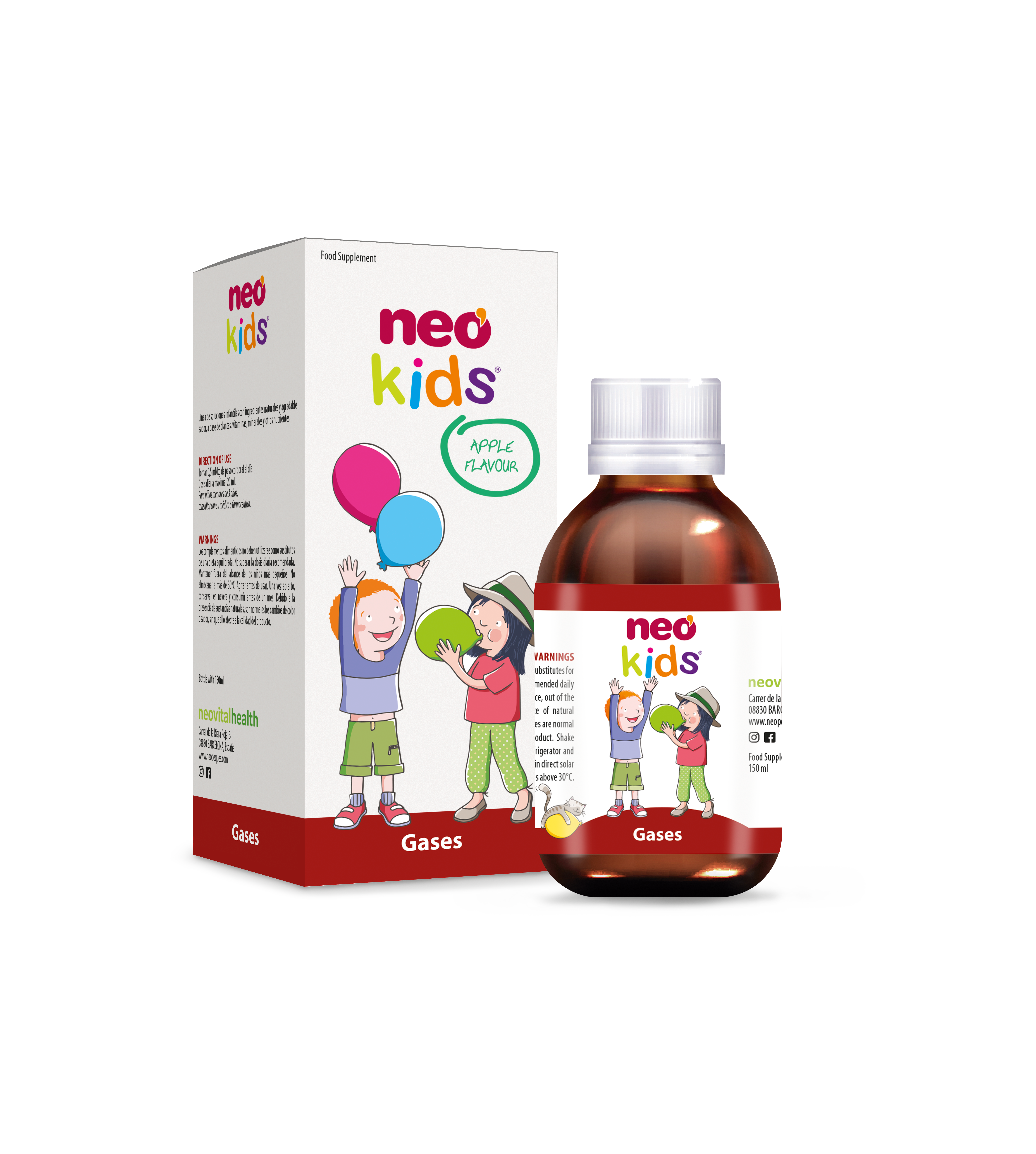 Neo Peques Gases is a children's syrup made from plants and nutrients with antispasmodic and carminative action such as green anise, fennel and camomile, which have traditionally been used in cases of digestive disorders such as bloating, flatulence, colic, gas and digestive discomfort.